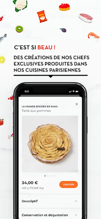 For more than 100 years, the experts at La Grande Épicerie de Paris have been known to be “finders” of traditional, cutting-edge, innovative products, made with love and delicacy while respecting traditions and raw materials. On the La Grande Epicerie Chez Vous application, do your daily shopping and discover our selection of groceries, cellars and carefully selected fresh products to delight you at any time! Sail through our range of butchers, charcuterie, fruit & vegetables in our Place du Marché… Fall for a few specialties from our Pastry, Bakery or Catering counters: exclusive recipes developed by our chefs, prepared in the kitchens of our Parisian store Rue de Sèvres, from carefully chosen fresh ingredients. Finally, sublimate your recipes of iconic grocery products, from France and around the world!