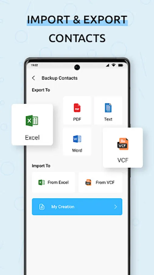 - Import the contacts from Excel and VCF to the phone's contact list.