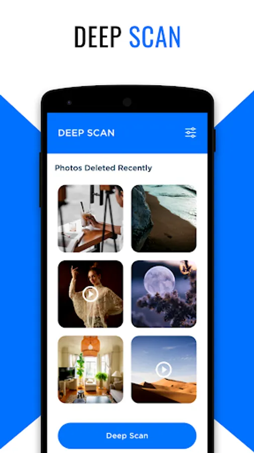 The powerful video recovery feature in Deleted video recovery: recover deleted photos, Data recovery tool is a simple file recovery photo and video recovery which can help you recover and restore deleted photos and videos! Because it is a complete mobile photo recovery application that can recover deleted photos with ultimate deep scan.