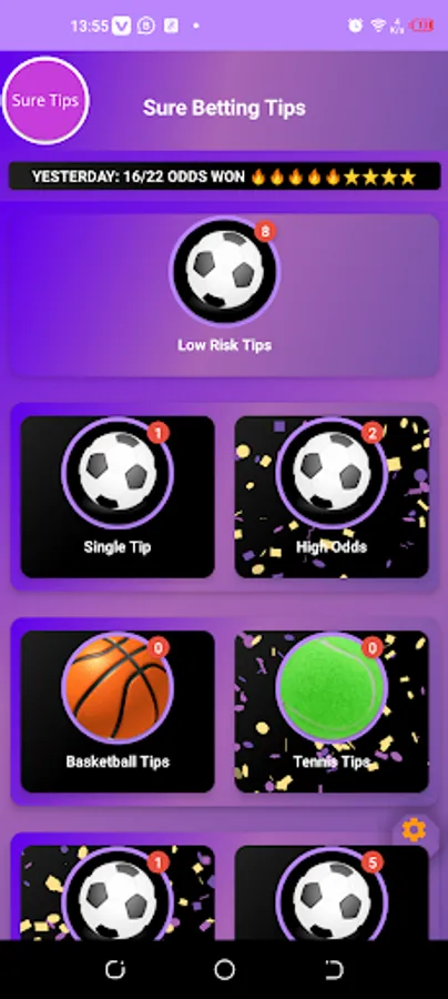 Sure Betting Tips Pro is Low risk tip, Single tip, High odds, Basketball Tips, Tennis Tip, Tip of Day Games Predictions App.
