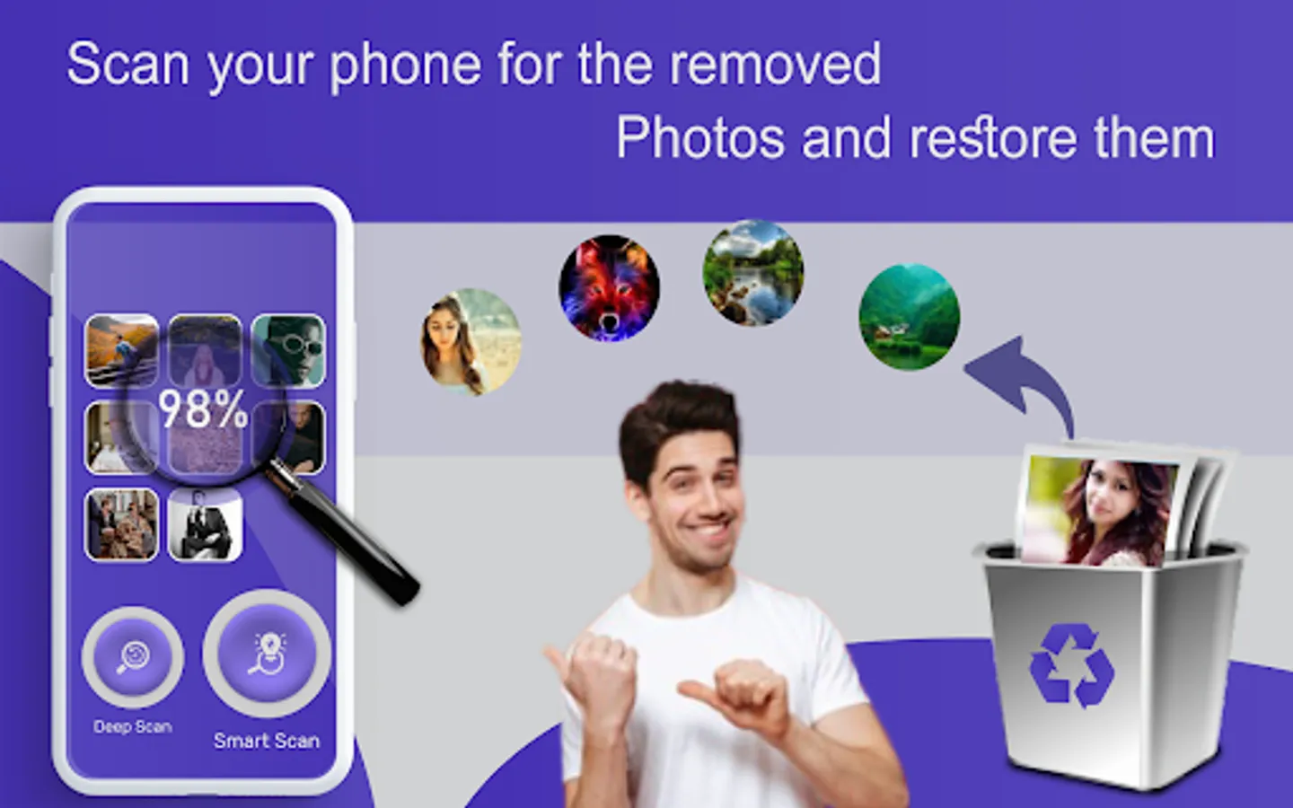 Download our latest Restore Photos and Backup Photos App. Deleted photos recovery to discover data too with unique enhanced phone data recovery features can find lost photos or recently deleted data. Trash bin and recover deleted files app automatically and may check your recent deleted files which are recently deleted.