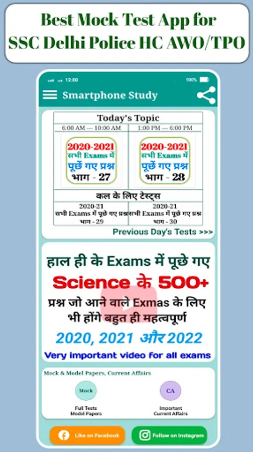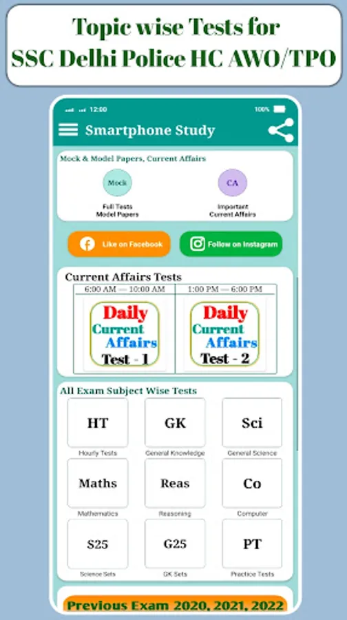 This is an App by SmartphoneStudy.in which provides Mock Tests and Practice sets for SSC Delhi Police Head Constable AWO/TPO Exam 2022.