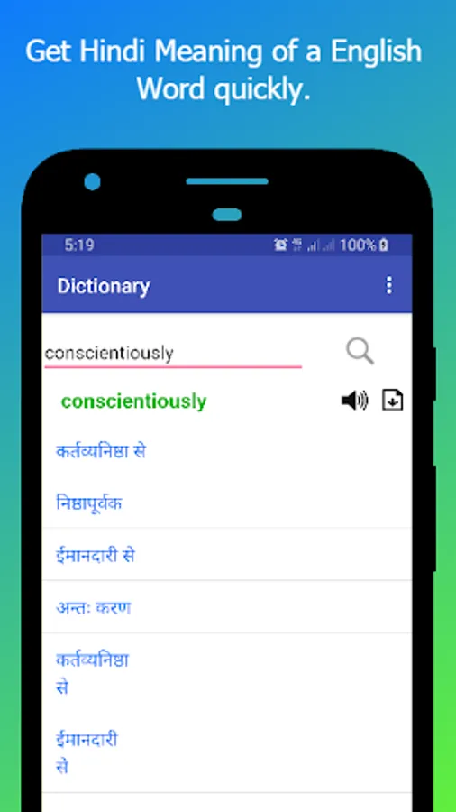 Light and Fast English Hindi Dictionary which is very easy to use.
