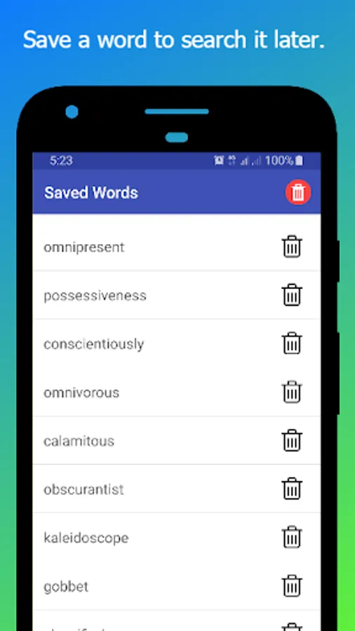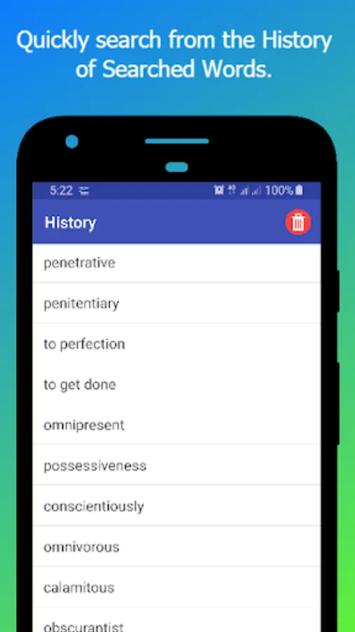 History of Saved Words : A History of saved words is maintained, so that you can pick it quickly.