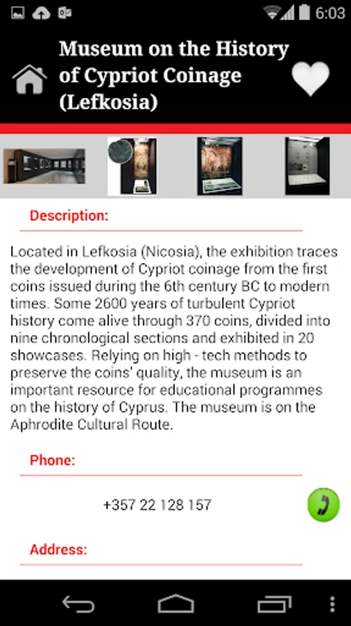 Visiting Cyprus? In this travel application you will find all the help you need exploring the beauties of the island! Contains information for many attractions, including archaeological sites, museums, churches - monasteries and other interesting places, with many more to come. For each attraction you can find information about location, operating hours, directions and more.