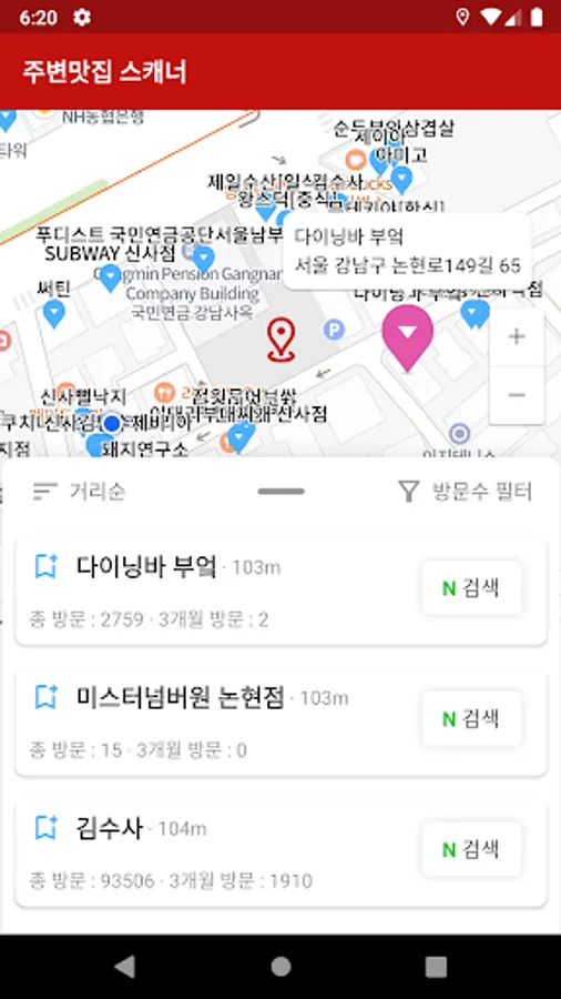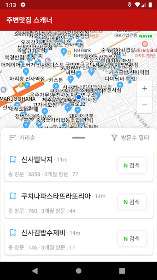 National Restaurant Finder is a service that finds restaurants based on the number of visits to T-map. You can see restaurants across the country at a glance, and you can search restaurants by number of visits, ratings, and distance. In addition, you can check the restaurant's location, contact information, and menu. The National Restaurant Finder is a useful service for finding restaurants.