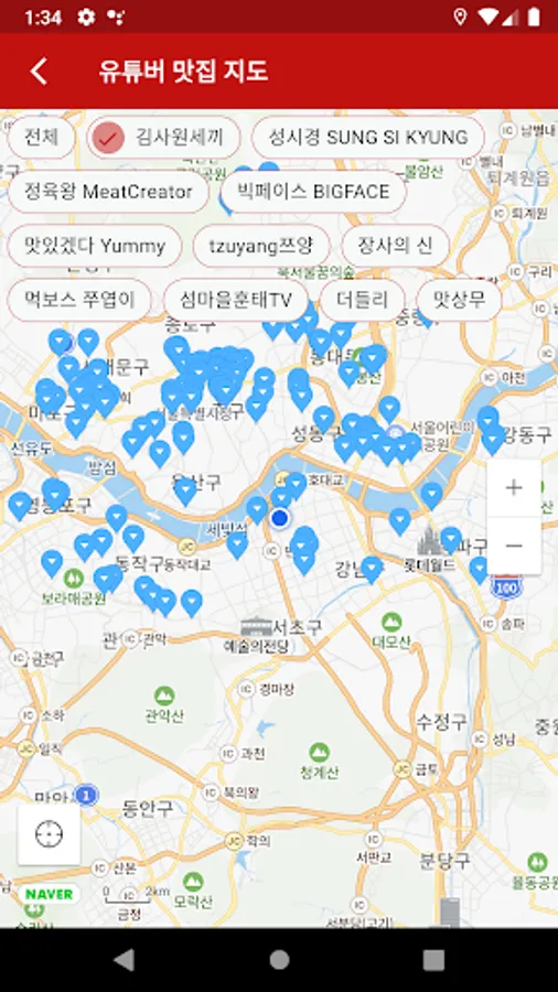 A service that finds restaurants based on the number of visits to T-map Find restaurants nationwide | Map of restaurants visited by famous YouTubers