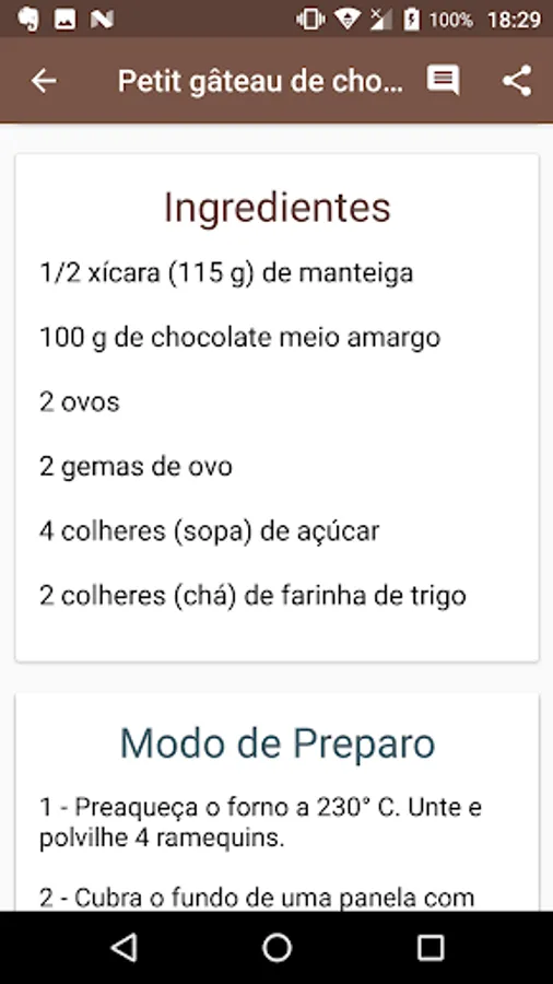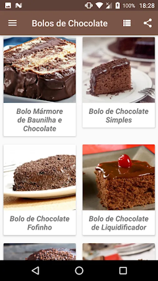 The application works without internet, simplified and easy to follow recipes, there's even the option to save and share the revenue of the most amazing chocolate cakes.