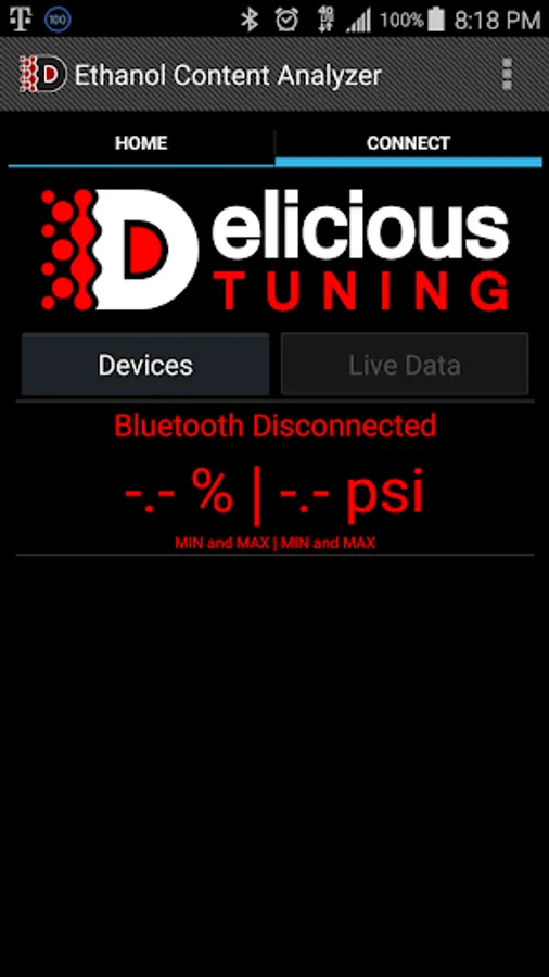 Real-time display of the ethanol content and fuel pressure of your vehicles fuel system. This application requires the Delicious Tuning Flex Fuel Bluetooth plugin kit, optional Fuel Pressure Safety System, and Android 4.3 Operating System or higher. It is compatible with a range of vehicles and we will be expanding as we continue to develop the hardware and application.