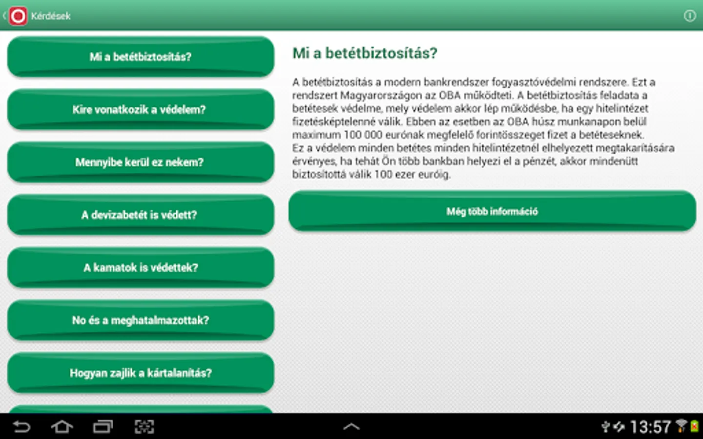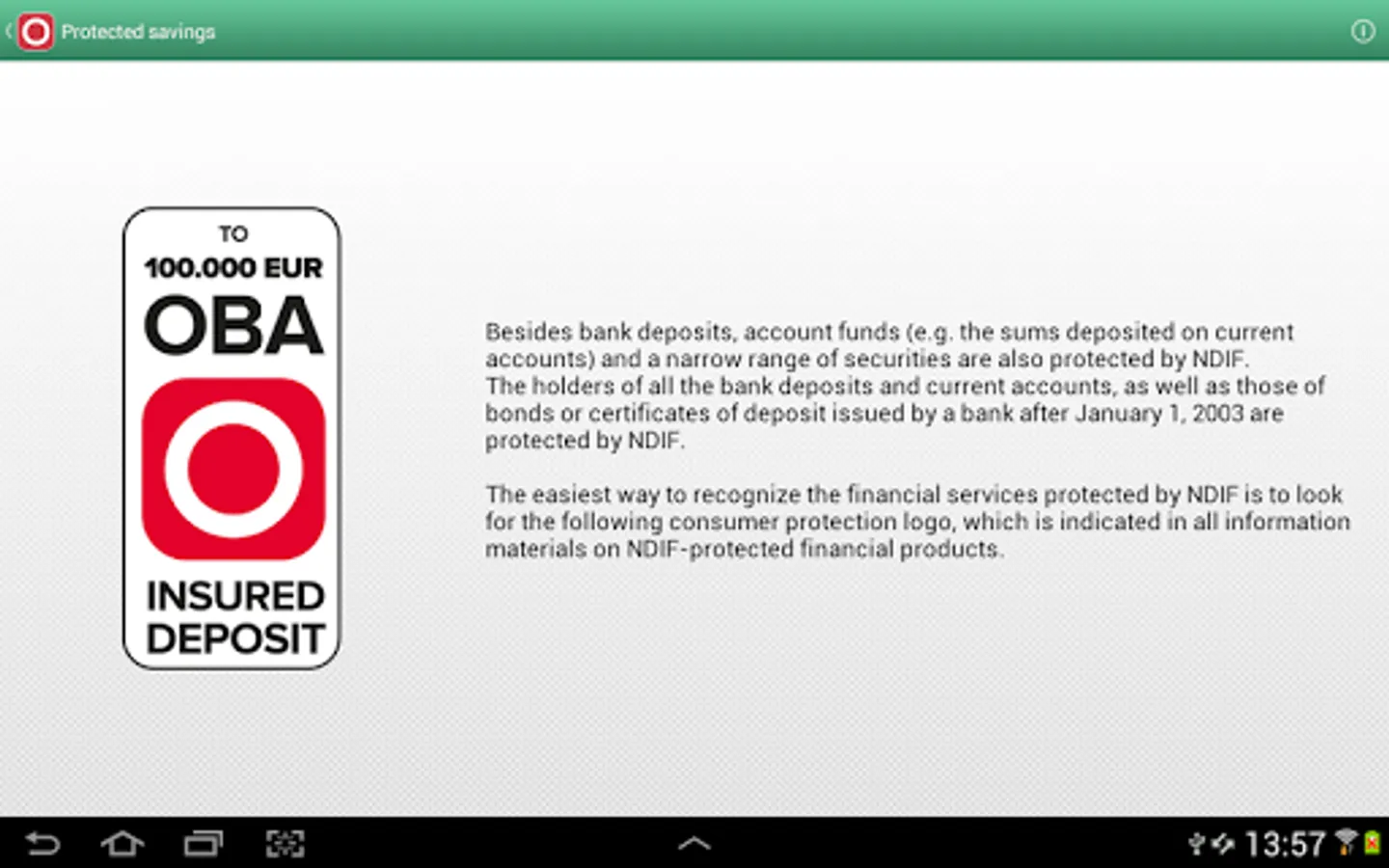 Mi az a betétbiztosítás? Mi védett? Kire vonatkozik a védelem? Hogyan működik? Ezekre és sok egyéb betétbiztosítással kapcsolatos kérdésekre választ ad az Országos Betétbiztosítási Alap (OBA) alkalmazása.