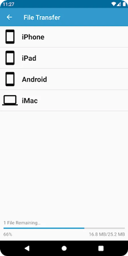 File Transfer is not a cloud. Files are transferred directly and instantly on your local network. No need to upload your files to the Internet and then download them on any device.