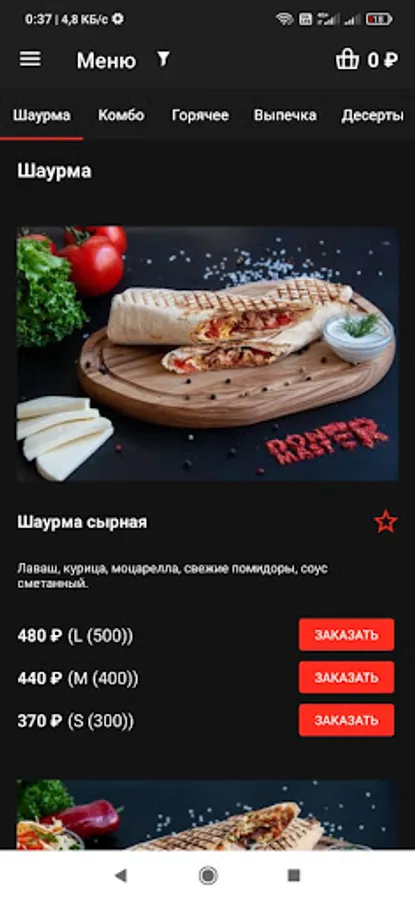 In addition to shawarma, we can offer you Salads, Pastries, Hot. To quench your thirst, there are fruit drinks and compotes on sale.