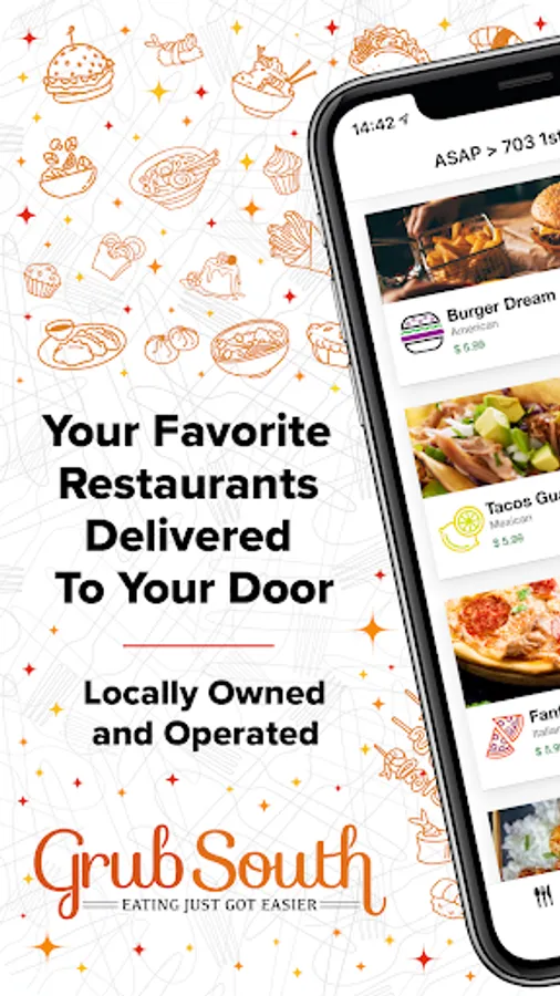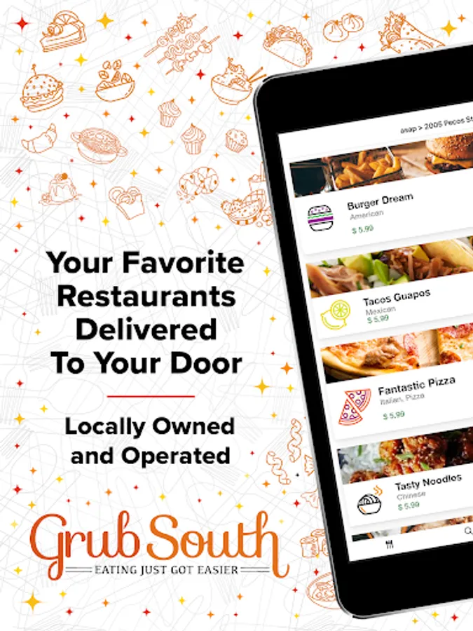 Eating just got easier! Use GrubSouth's free mobile app to get your favorite food delivered to your door