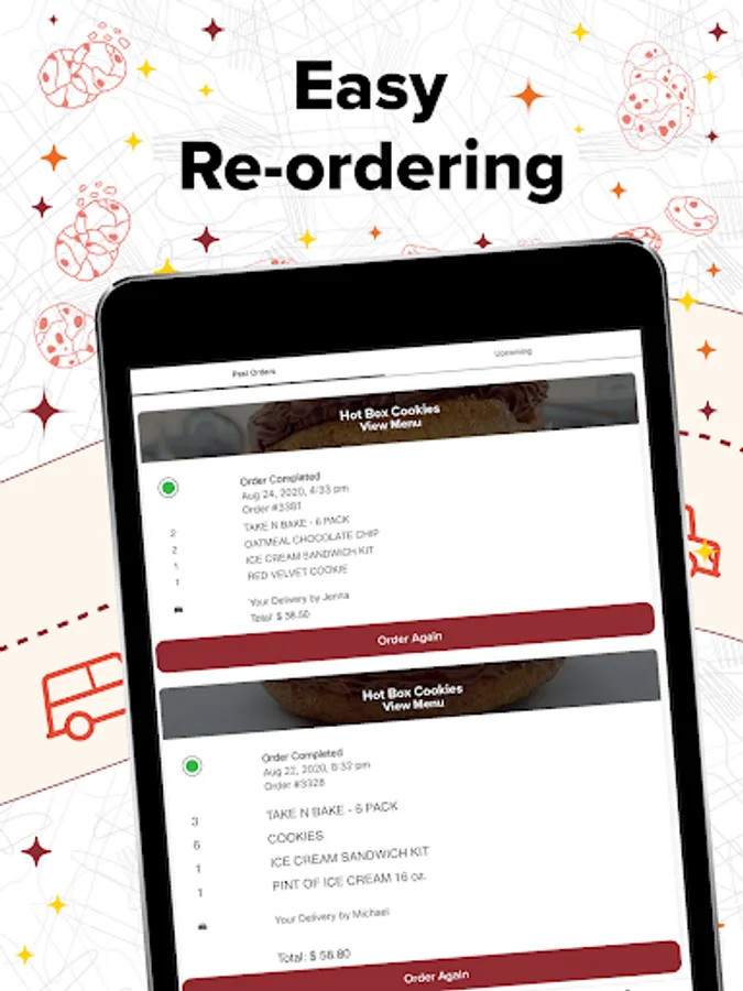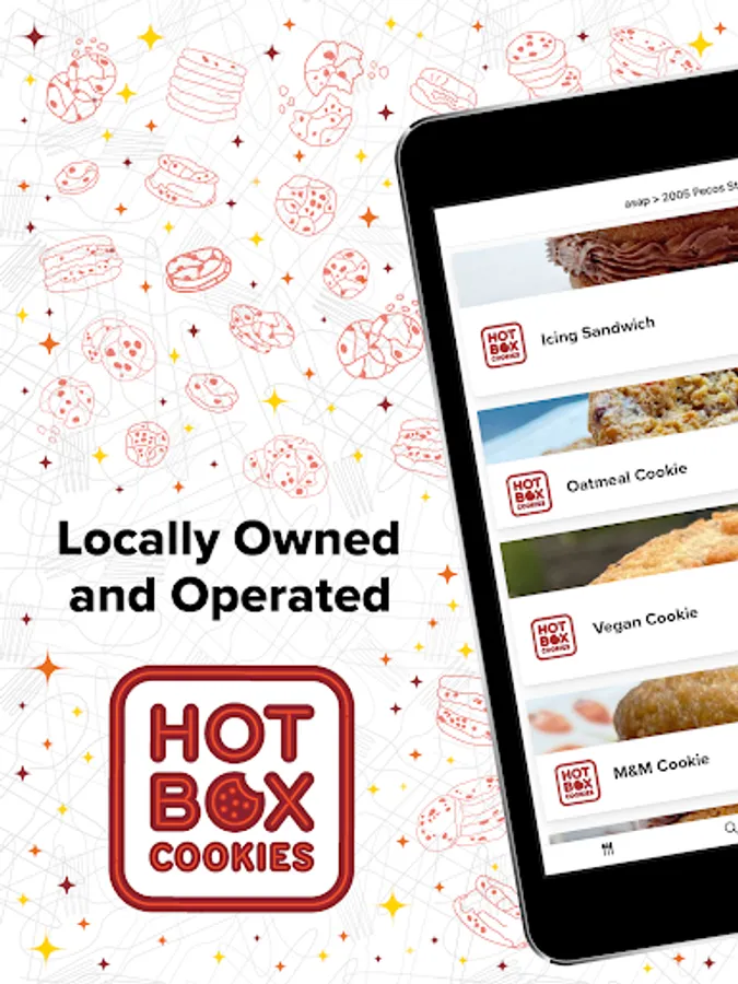 Like a tiny Hot Box Cookies that lives in your phone, our app lets you order our warm fresh-baked cookies for delivery, pickup, and even catering. Plus, you can earn points and redeem Hot Box rewards!