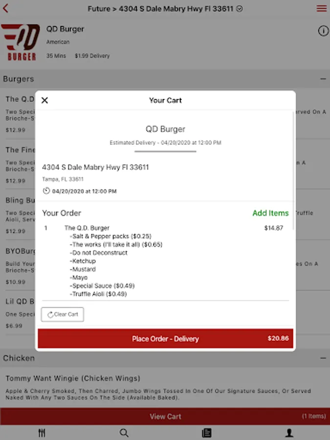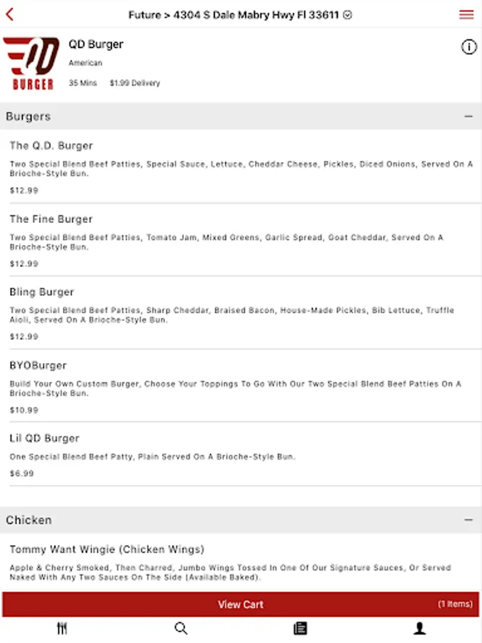 QD uses quality ingredients, quality togo packaging, and quality, tamper-proof sealed bags. We focus on providing quality dining options you can enjoy your meal home, the office, or any destination you desire. Our menus give you a wide variety of cuisines and items. Try a Nashville Hot Chicken Sammie from Cluck'n QD. Or the Bling Burger from QD Burger, you will not be disappointed.