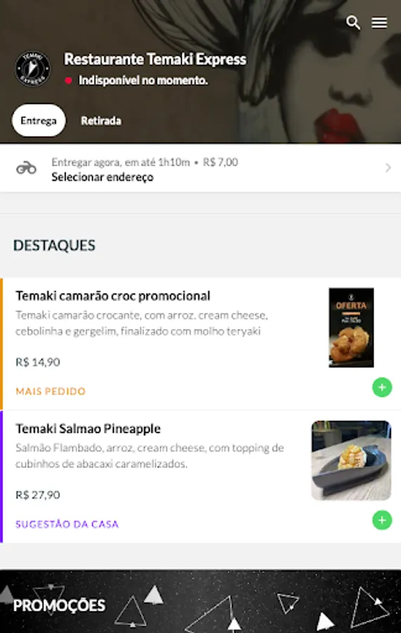 Order Delivery for Restaurante Temaki Express with a few taps on your Android screen