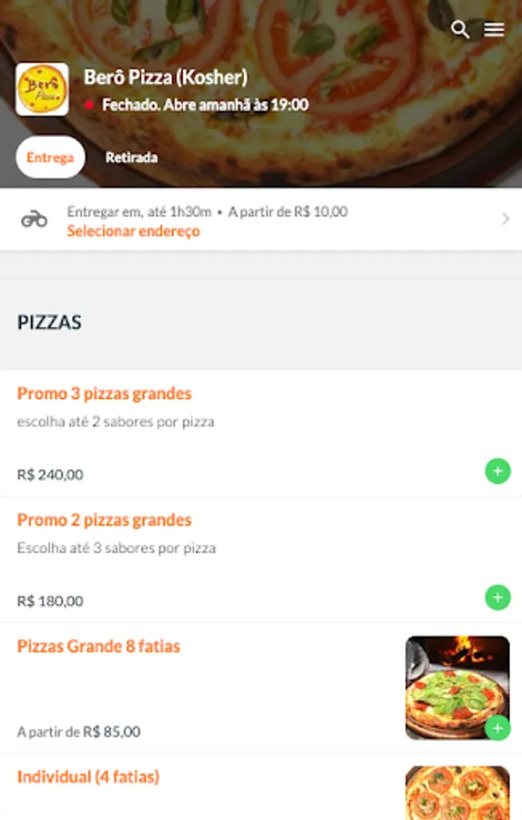 Order Delivery for Berô Kosher Pizza with just a few taps on your Android screen