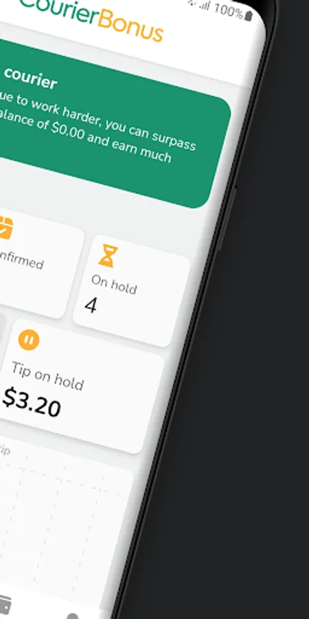 CourierBonus is an innovative mobile app designed to motivate couriers to deliver packages on time by rewarding them with their earned tips. The app provides an intuitive interface that allows couriers to view their current deliveries and their corresponding tip amounts.