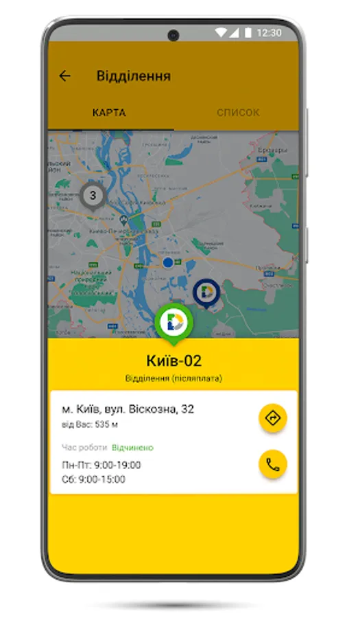 quick search – of any representative office on the territory of Ukraine;