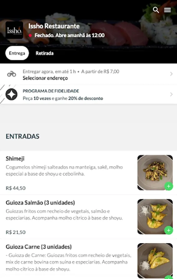 Order Delivery to Isshô Restaurante with a few taps on your Android screen