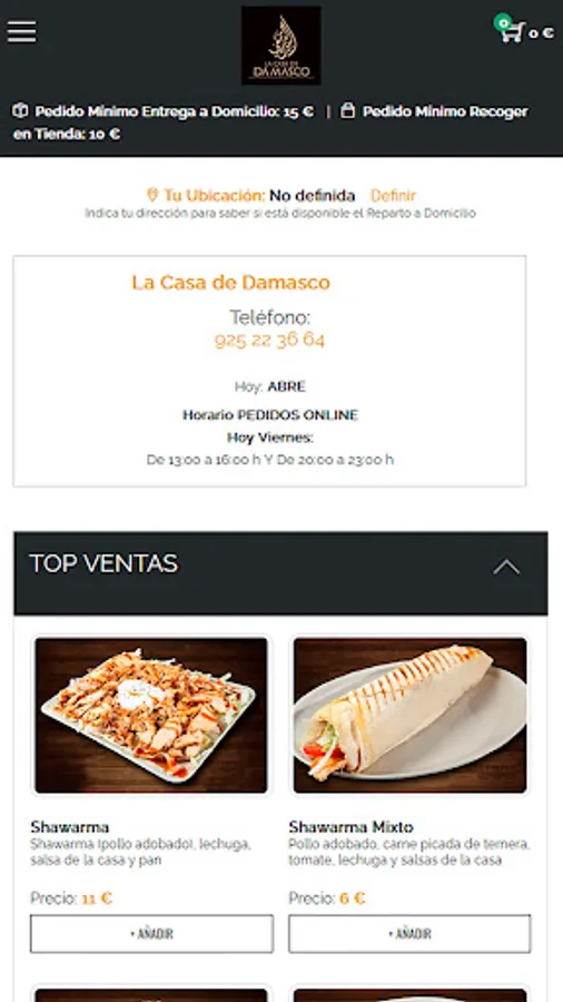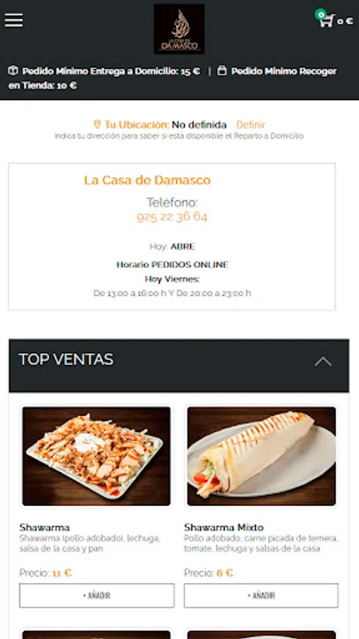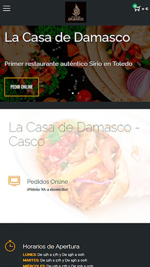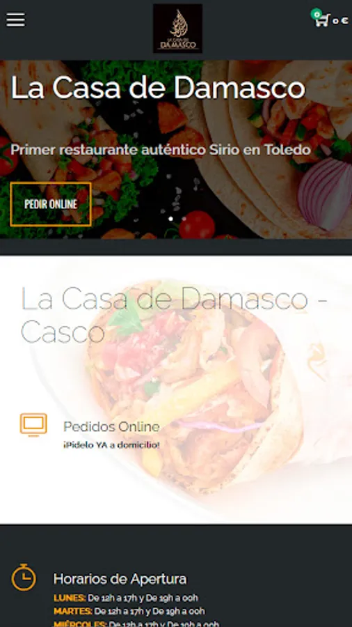 From the APP of the La Casa de Damasco Restaurant, you can place your Online Orders at home and to pick up at our premises.