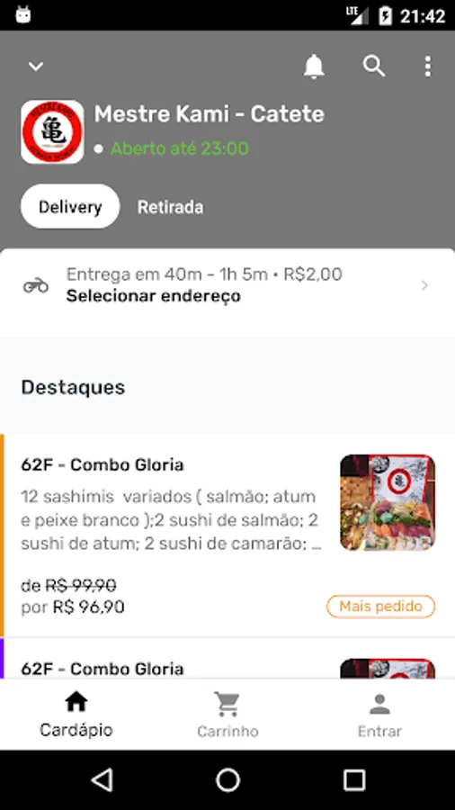 Request Delivery to Mestre Kami - Catete with a few touches on your Android screen