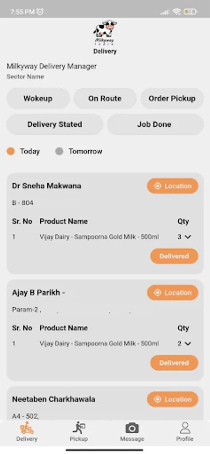 Milkyway India delivery service staff module to serve our customers in the best way possible.