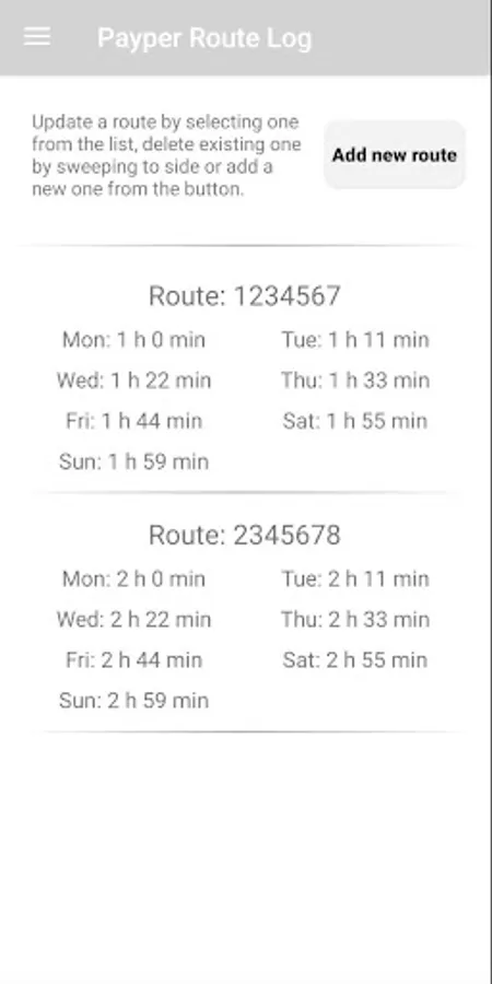 Payper Route Log is a simple offline app that helps a newspaper carrier to keep track of one's work time and salary.