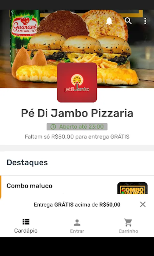 Request Delivery to Pé Di Jambo Pizzaria with a few taps on your Android screen