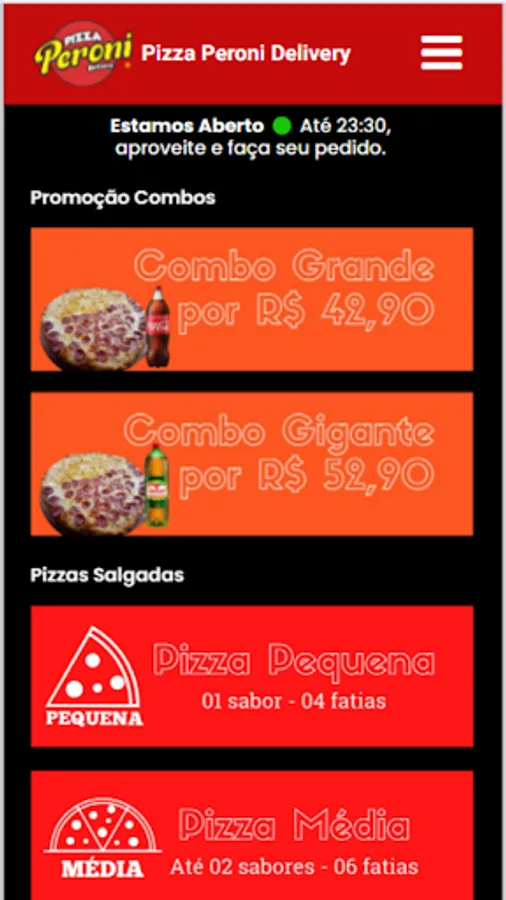 APP for online ordering of Pizza Peroni Delivery in Foz do Iguaçu. We have 3 units to serve you better.