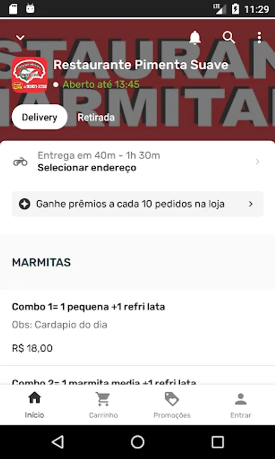 Order Delivery for Restaurante Pimenta Suave with just a few taps on your Android screen