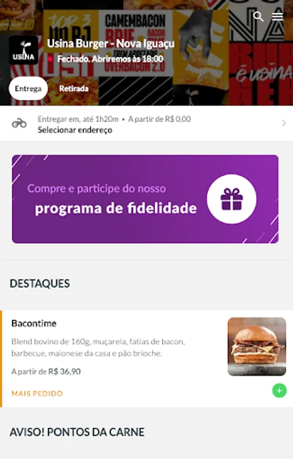 The best hamburgers are in Usina! Download the app and order your favorite snack in a few clicks!