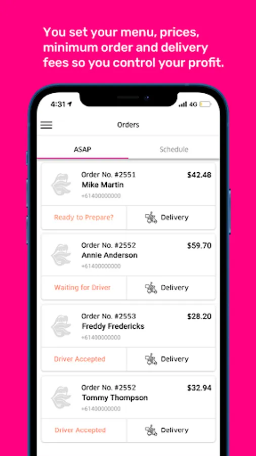 You set your menu, prices, minimum order value, driver rates and customer delivery fees so you control your profit margins.