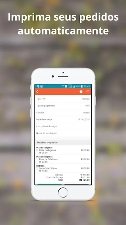 Application for the use of customers who use our delivery application for their trades. Through this application is made all administration of the delivery of the trade. Among the various functions and possibilities available, we highlight the immediate receipt of requests made through the application delivery of customers, interaction with orders, and even opening and closing the application, which makes it impossible for customers to request through the application when their trade is operating.