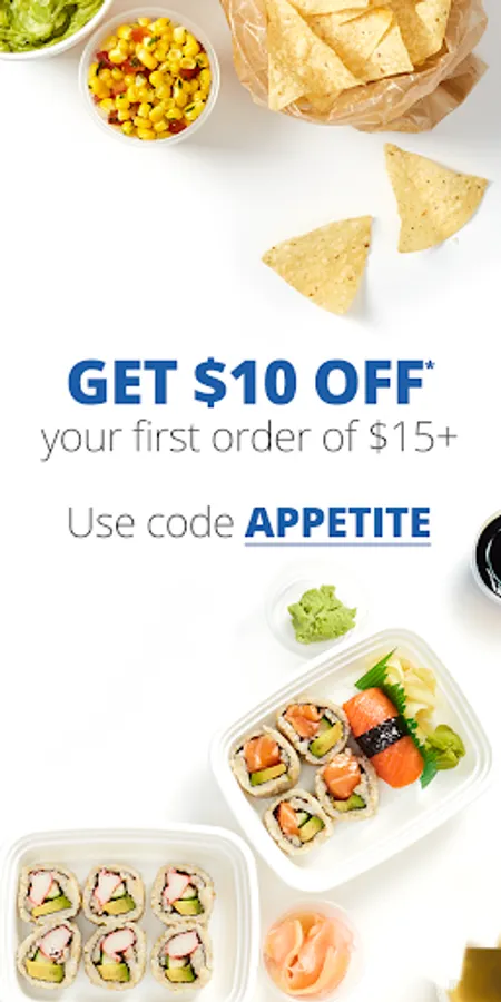Get $10 off your first order with a minimum subtotal of $15 (excluding tax, tip, delivery fee). Just use code APPETITE