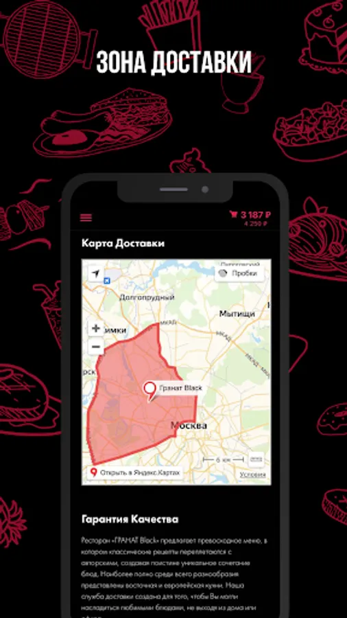 Mobile application "GRANAT Black" is a fast and convenient way to order delicious food.