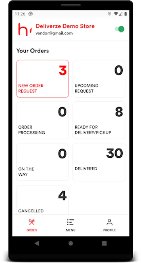 - Receive in-app notifications to ensure you never miss an incoming order