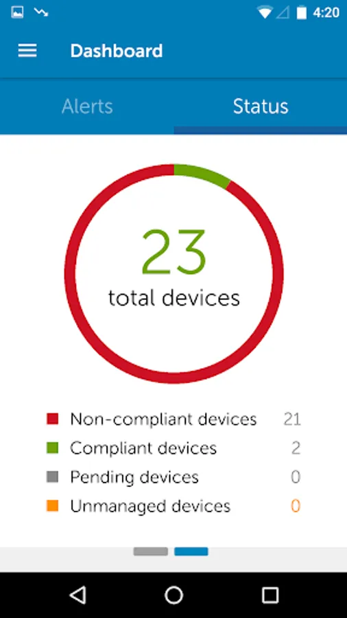 - Dashboard to view alerts by severity and device summary