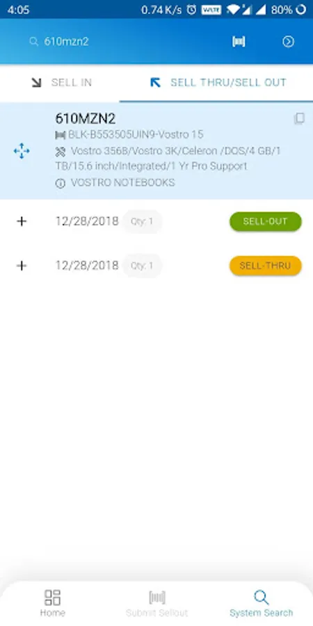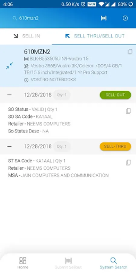 (4) The user can also perform a Transaction search for all the uploaded sell-outs and track the status of each transaction