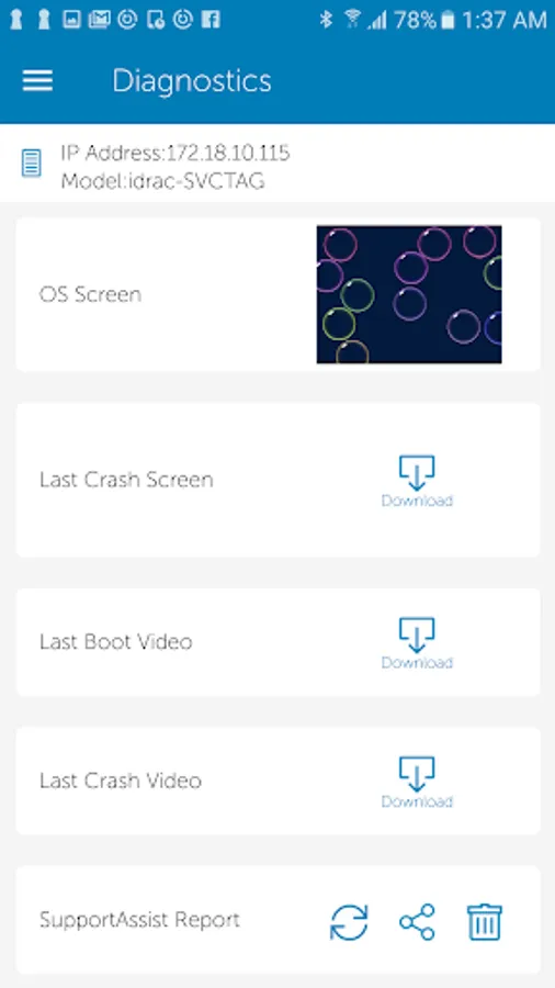 • Access, share or upload SupportAssist Collection reports; View Last Crash screen and video (requires iDRAC9)