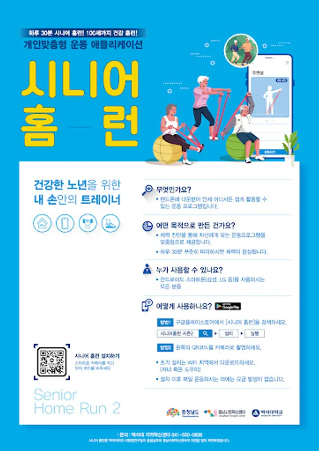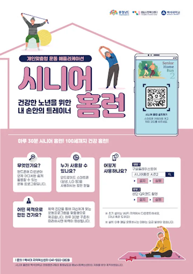'Senior Home Run' is an application developed so that senior users can exercise easily and safely at home according to their exercise abilities.