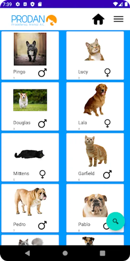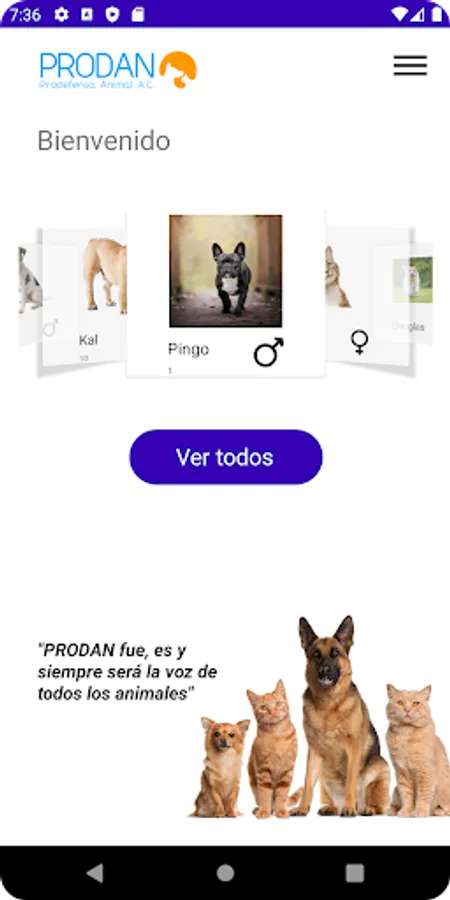 Consult the complete catalog of pets to request accommodation and access PRODAN's official contacts from your cell phone.