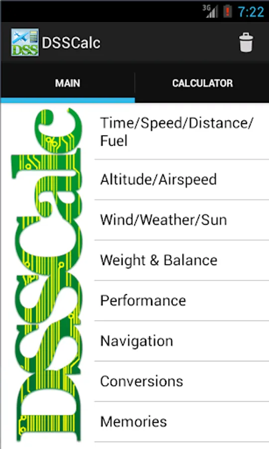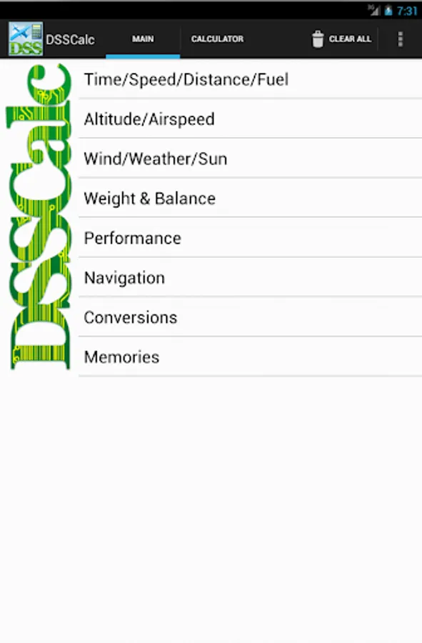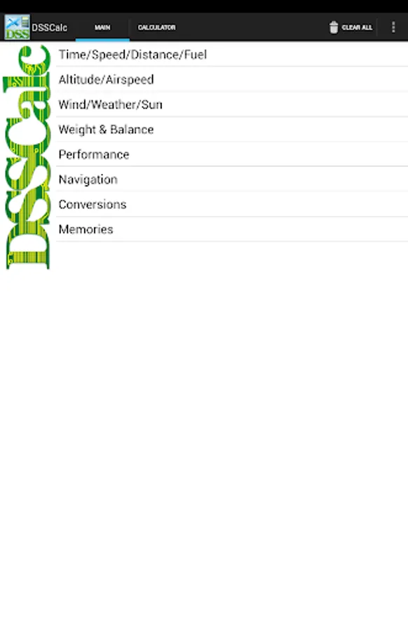 For over 20 years, pilots having been using our DSSCalc Flight Computer on their desktop and handheld devices, and now you can run it on your Android phone or tablet! DSSCalc gives you all the power of an electronic E6B as an easy-to-use Android application. Menu-driven aviation computations and per-screen documentation make DSSCalc a breeze to use!