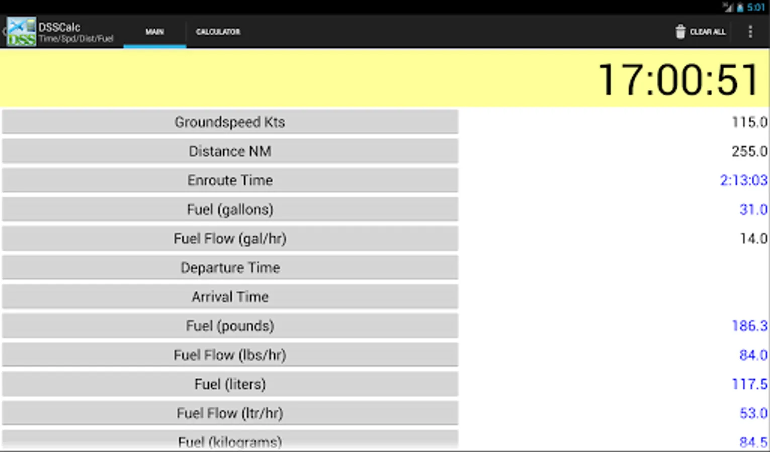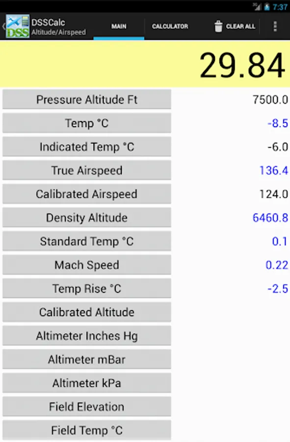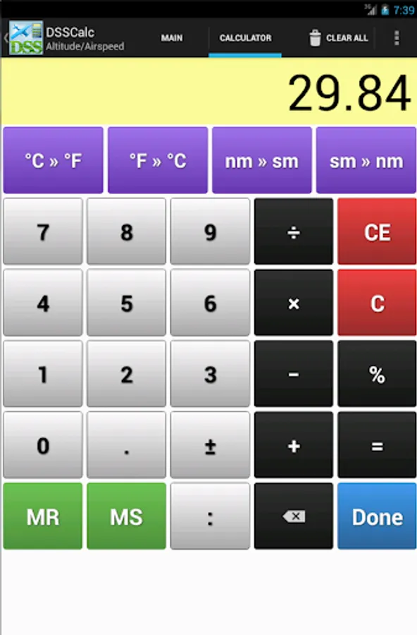 Even if you already have a favorite pre-flight calculator, you'll still find DSSCalc to be invaluable while flying in your aircraft with our large easy to read text and button options and simple, streamlined calculator-style input screen.