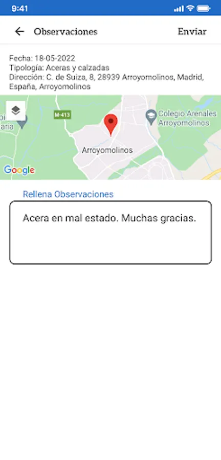 In a fast and intuitive way, the residents of Arroyomolin will be able to notify issues related to any area of the municipality such as cleanliness, state of urban furniture and public spaces, care of the environment or suggestions, among others.