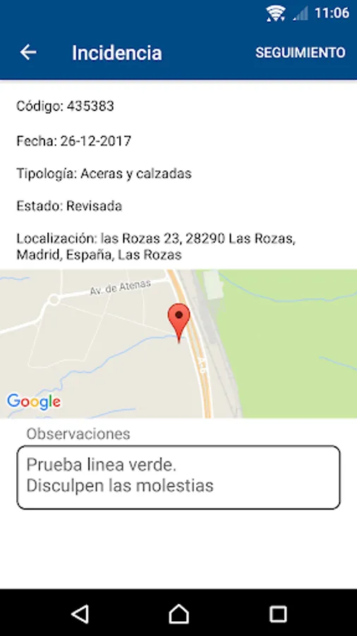 The municipal technicians or the corresponding service company will immediately receive the incident, being able to update its status once resolved, so that the citizen will receive a notification on his own mobile with the updated monitoring, being informed at all times.
