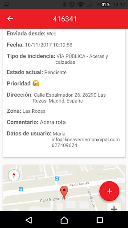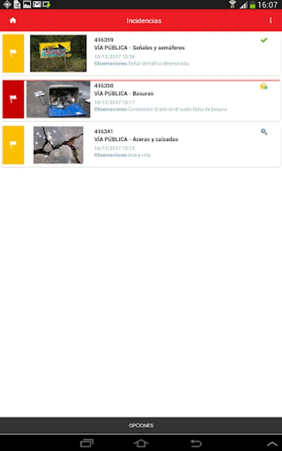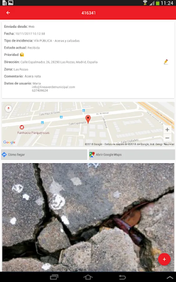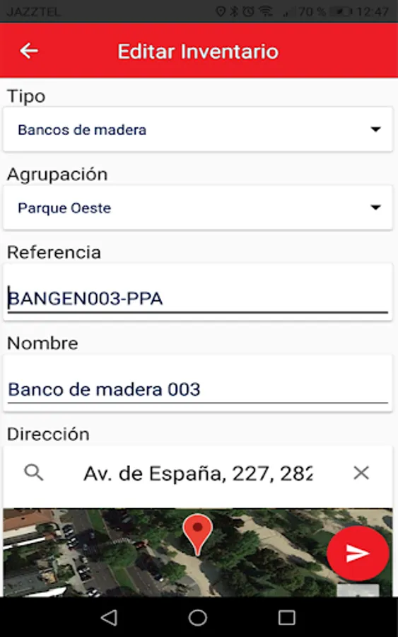 The app allows you to see the incidents both on a map and in a list where they can be filtered by different criteria. The incident file has multiple functionalities, such as seeing all the information related to it (full description, type, photo, geolocation ...), attach files and photos, see the traceability in the resolution of the incident, notify any responsible, assign an item of inventory, mark as revised, change your priority, get to the place through GPS navigation ... Everything from your own mobile.