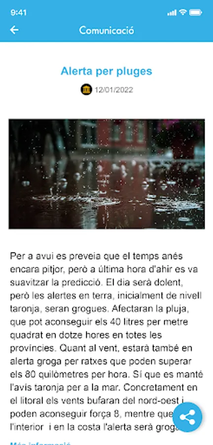The application "Sant Feliu un poble Viu" is also a new channel to stay informed about everything that happens in the municipality and warnings that affect residents such as traffic restrictions, weather warnings ... For users will receive notifications on their devices detailing the incident.