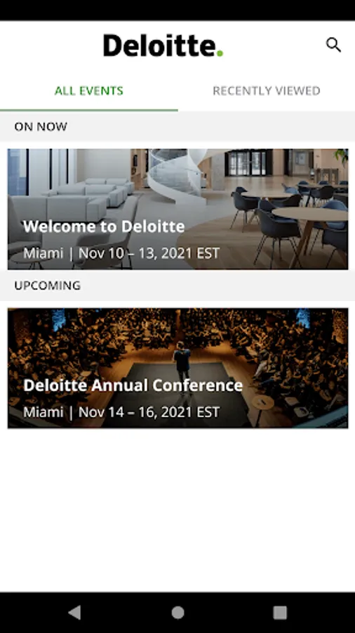 Deloitte Meetings and Events App, home to all Deloitte proprietary events. This app provides access to all information related to your event, from your personalized agenda to the best options for you to take care of your well-being while attending one of our world class events. It also includes speaker bio’s, the opportunity to network with your fellow participants and share fun photos and comments throughout the event.