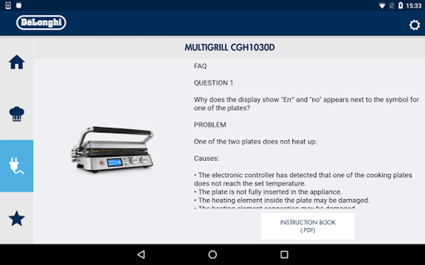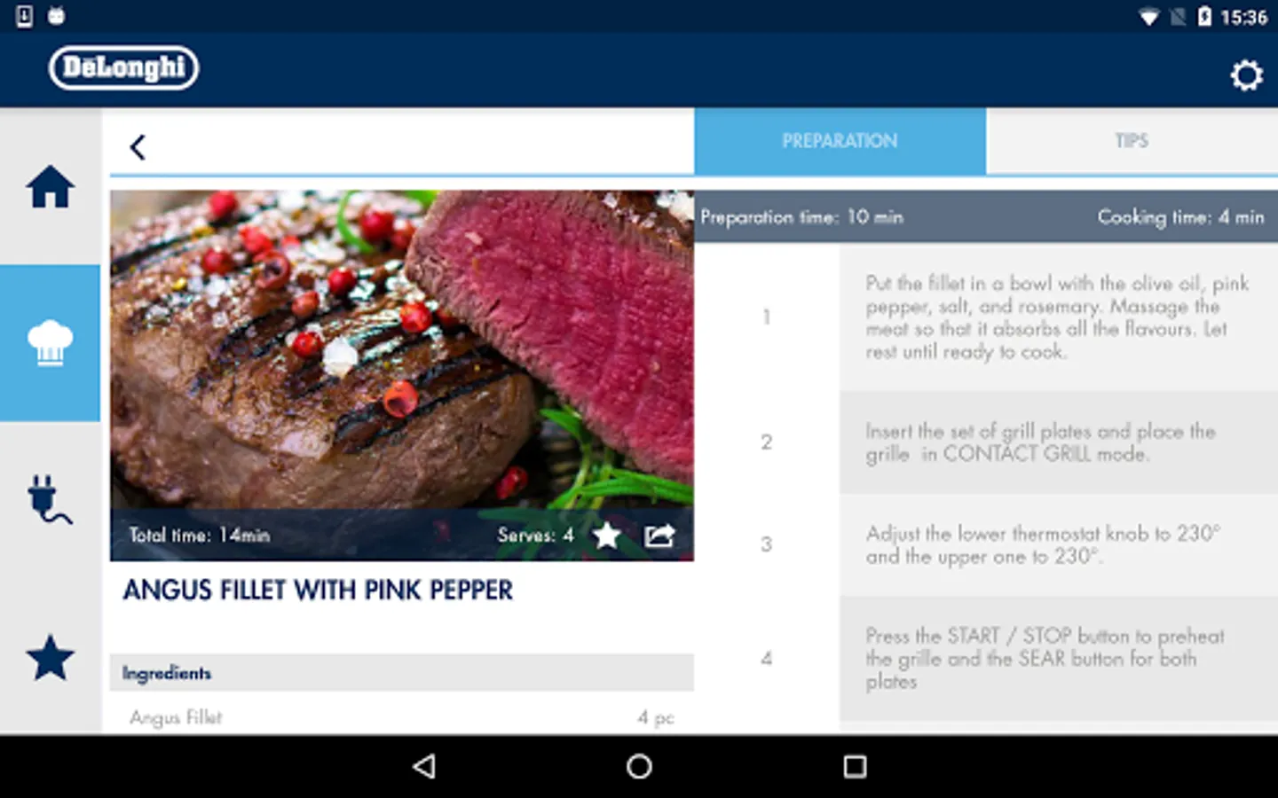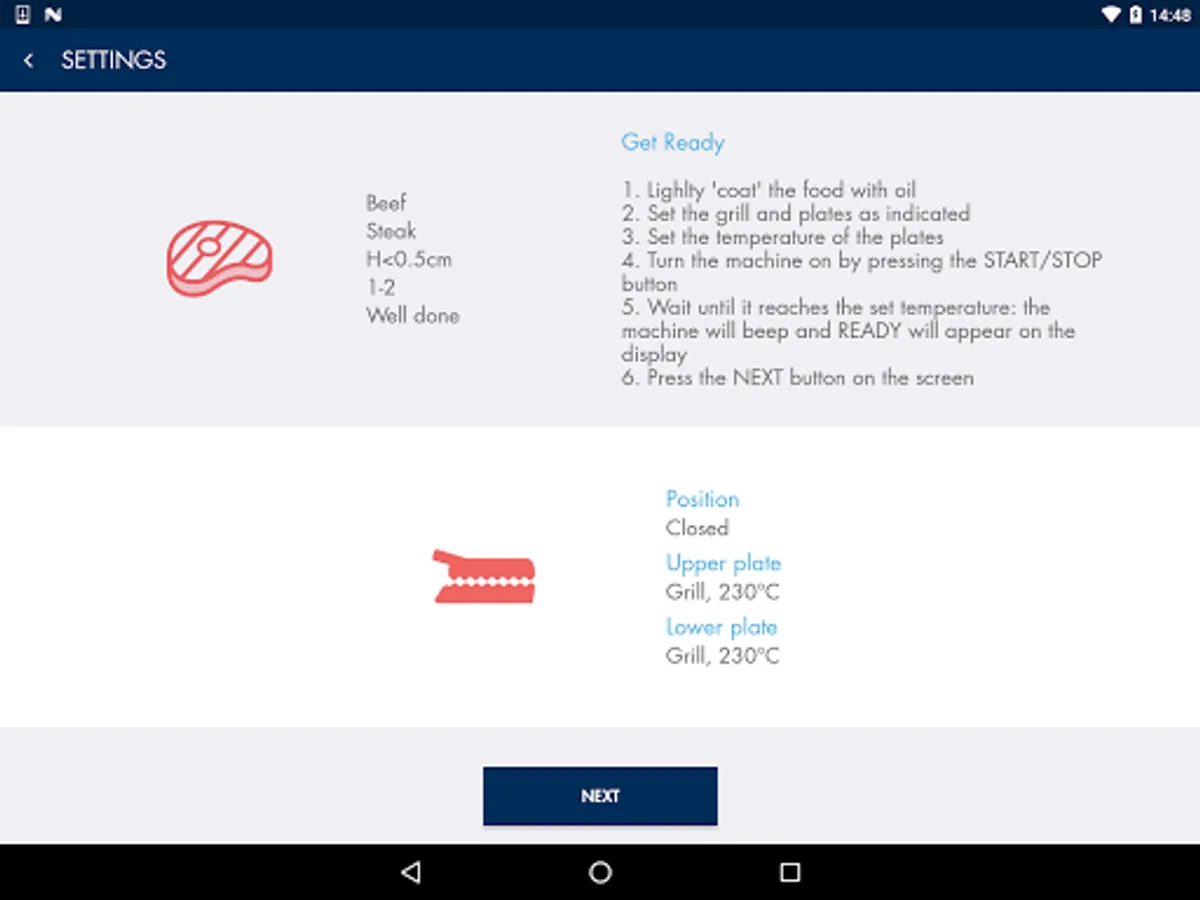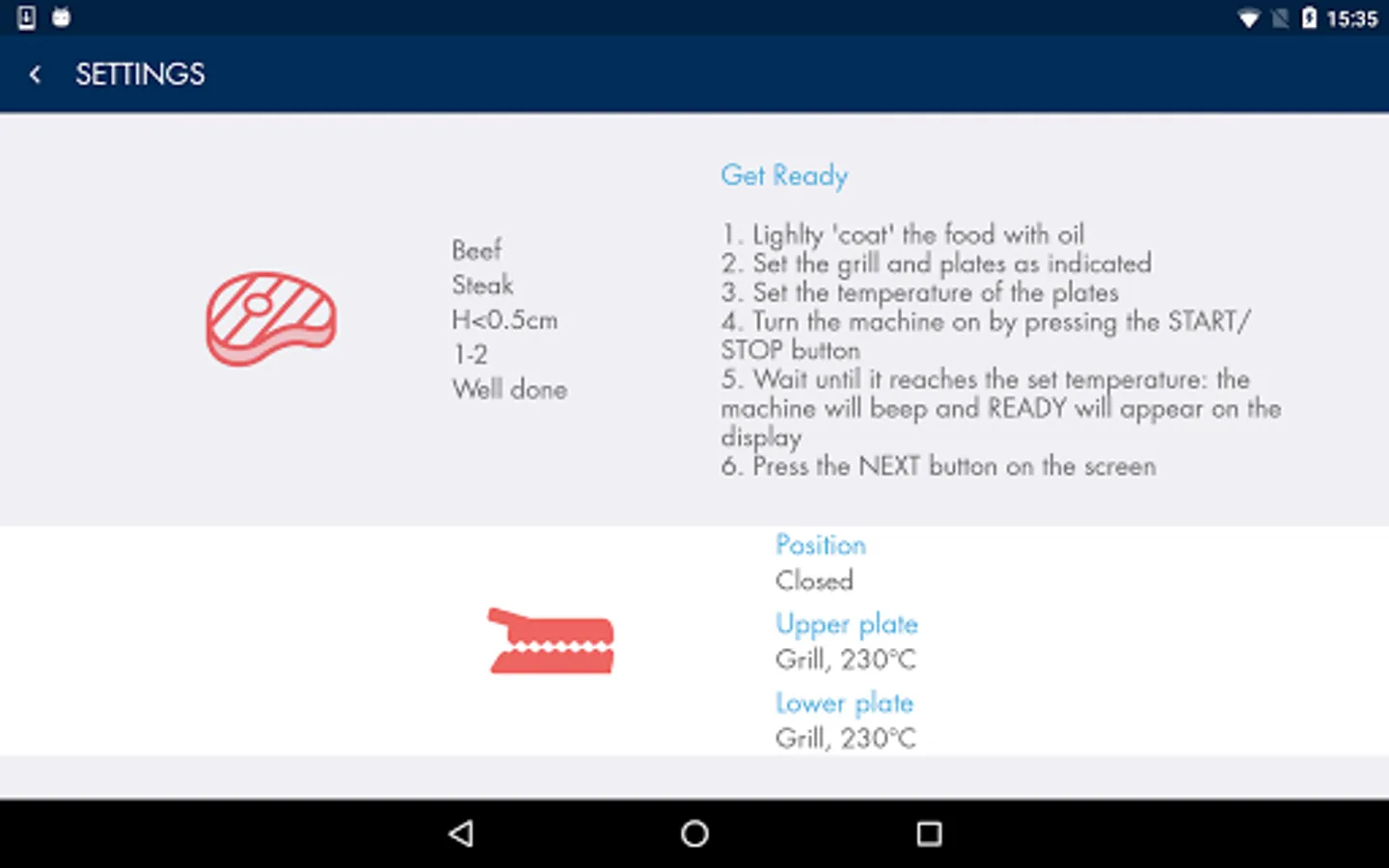 In accordance with the type and the quantity of food you want to cook, the app suggests the best plate position, temperature and cooking time settings. Incredibly easy to use, the app helps you to manage the most delicate stages of cooking, giving you precise instructions and tips for perfect results every time. It also features a handy recipe book filled with a host of delicious new dishes to try.